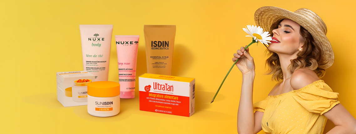 Su Farmacia Mascia abbiamo selezionato i migliori trattamenti esfolianti e integratori solari per prepararti al meglio alla nuova stagione.